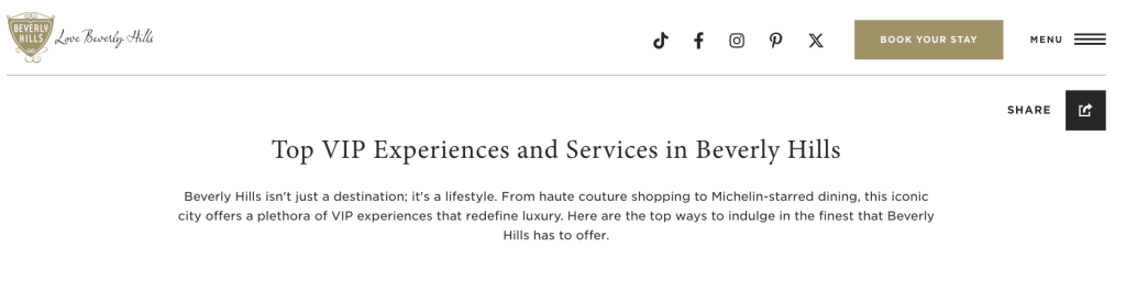 This guide, published on lovebeverlyhills.com, offers visitors insights into VIP experiences and and hidden gems in Beverly Hills.